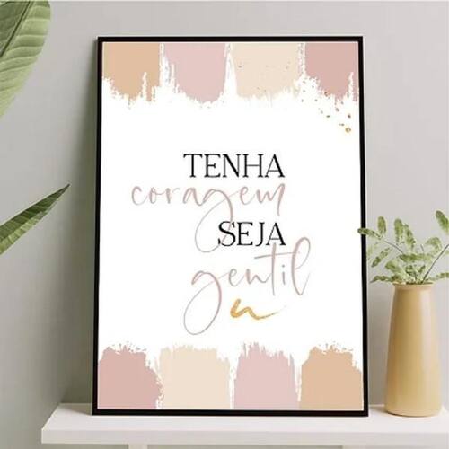 Quadro tenha coragem seja gentil 33x24cm Moldura: madeira preta Informações do produto tire todas as suas dúvidas no descritivo abaixo: decoração para quarto, sala, cozinha, escritório, área gourmet e muito mais. Chega de paredes vazias medidas - cada peça tem 33x24cm a4 . Material do papel - papel fotográfico brilhante de altíssima resolução acabamento - todos os quadros são acompanhados de uma película de acetato para proteção da imagem. - os quadros são embalados de forma segura com plástico bolha com camada dupla de acordo com o tamanho dos quadros. - de 3 meses. Meu quadro chegou. Como posso fixá-lo Você precisa apenas de um martelo e um prego, pois os quadros já vão acompanhados de penduradores. Esta é a forma mais indicada. Caso prefira, você pode utilizar uma fita dupla face neste caso, sugerimos de alta qualidade para evitar que descole e seu quadro caia . Como posso limpar meu quadro A limpeza é feita como um móvel comum da sua casa. Apenas um pano seco ou espanador são suficientes para tal Marca: Não Informado
