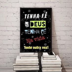 Quadro tenha fé em deus tenha fé na vida 45x34cm Moldura: madeira branca Informações do produto tire todas as suas dúvidas no descritivo abaixo: decoração para quarto, sala, cozinha, escritório, área gourmet e muito mais. Chega de paredes vazias. Medidas - cada peça tem 45x34cm a3 . Material do papel - papel fotográfico brilhante de altíssima resolução acabamento - todos os quadros são acompanhados de uma película de acetato para proteção da imagem. - os quadros são embalados de forma segura com plástico bolha com camada dupla de acordo com o tamanho dos quadros. - de 3 meses. Meu quadro chegou. Como posso fixá-lo Você precisa apenas de um martelo e um prego, pois os quadros já vão acompanhados de penduradores. Esta é a forma mais indicada. Caso prefira, você pode utilizar uma fita dupla face neste caso, sugerimos de alta qualidade para evitar que descole e seu quadro caia . Como posso limpar meu quadro A limpeza é feita como um móvel comum da sua casa. Apenas um pano seco ou espanador são suficientes para tal Marca: Não Informado