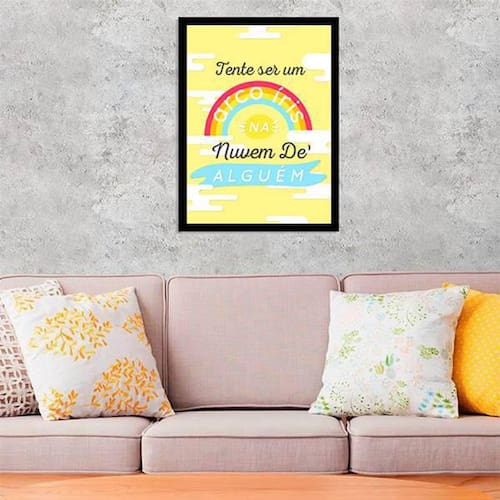 O Quadro Decorativo Tente Ser Um Arco-Íris Na Nuvem De Alguém da Quadros On-Line é uma excelente opção para decorar seu ambiente, tornando-o mais aconchegante, bonito e com muito estilo. Para facilitar na instalação, o quadro já vem com pendurador que pode ser removido com facilidade. O quadro é produzido com papel fotográfico brilhante de alta resolução e acompanha uma película de acetato para proteção da imagem. Além disso, vem com moldura em madeira maciça e pendurador móvel que pode ser retirado facilmente caso deseje fixar com fita dupla face. Características: - Quadro com 34x23cm com moldura - Moldura em madeira maciça preta - Produzido em papel fotográfico brilhante - Acompanha película de acetato Especificações Técnicas Produto: Quadro Decorativo Marca: Quadros On-Line Modelo: Tente Ser Um Arco-Íris Na Nuvem De Alguém Material: Papel Fotográfico Acabamento: Brilhante Acompanha: Película de acetato para proteção Instalação: Acompanha pendurador móvel Tamanho unidade: 34 x 23 cm : 3 meses Limpeza e conservação Para manter seus quadros sempre limpos e bem conservados a limpeza deve ser feita como em um móvel comum da sua casa. Apenas um pano seco ou um espanador já é suficiente para retirar o pó que pode se acumular nos quadros.
