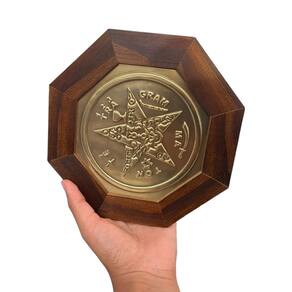 Quadro Tetragramaton Madeira Imbuia Oitavado e Metal 18 Cm