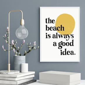 Quadro the beach is always a good idea 45x34cm Cor: moldura branca Informações do produto tire todas as suas dúvidas no descritivo abaixo: decoração para quarto, sala, cozinha, escritório, área gourmet e muito mais. Chega de paredes vazias. Medidas - cada peça tem 45x34cm a3 . Material do papel - papel fotográfico brilhante de altíssima resolução acabamento - todos os quadros são acompanhados de uma película de acetato para proteção da imagem. - os quadros são embalados de forma segura com plástico bolha com camada dupla de acordo com o tamanho dos quadros. Garantia - garantia de 3 meses. Meu quadro chegou. Como posso fixá-lo Você precisa apenas de um martelo e um prego, pois os quadros já vão acompanhados de penduradores. Esta é a forma mais indicada. Caso prefira, você pode utilizar uma fita dupla face neste caso, sugerimos de alta qualidade para evitar que descole e seu quadro caia . Como posso limpar meu quadro A limpeza é feita como um móvel comum da sua casa. Apenas um pano seco ou espanador são suficientes para tal