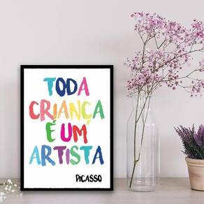 Quadro toda criança é um artista 24x18cm - com vidro Moldura: madeira branca Informações do produto tire todas as suas dúvidas no descritivo abaixo: decoração para quarto, sala, cozinha, escritório, área gourmet e muito mais. Chega de paredes vazias medidas - cada peça tem 24x18cm a5 . Material do papel - papel fotográfico brilhante de altíssima resolução acabamento - todos os quadros são acompanhados de vidro para proteção da imagem. - moldura em madeira maciça na cor branca e pendurador . - os quadros são embalados de forma segura com plástico bolha com camada dupla de acordo com o tamanho dos quadros. Garantia - garantia de 3 meses. Meu quadro chegou. Como posso fixá-lo Você precisa apenas de um martelo e um prego, pois os quadros já vão acompanhados de penduradores. Esta é a forma mais indicada. Como posso limpar meu quadro A limpeza é feita como um móvel comum da sua casa. Apenas um pano seco ou espanador são suficientes para tal Cor: moldura branca