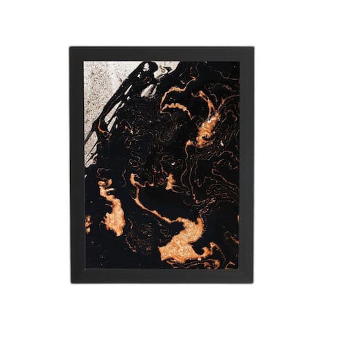 Quadro Tons De Laranja Preto Abstrato Moldura Preta 60X40Cm