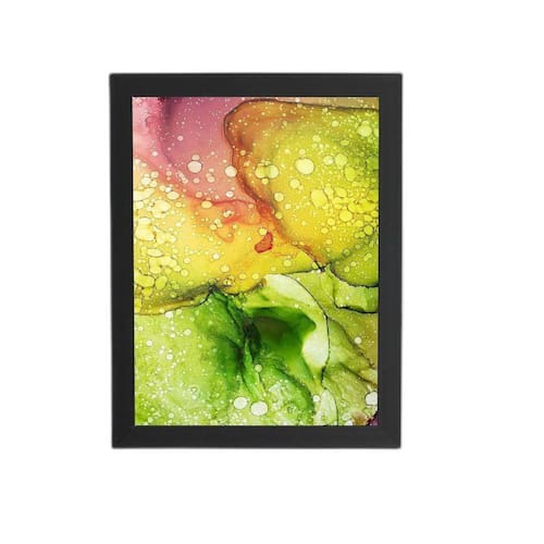 Quadro Tons De Verde E Rosa Abstrato Moldura Preta 60X40Cm