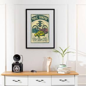Quadro transporte público - 60x48cm Cor: moldura preta Informações do produto tire todas as suas dúvidas no descritivo abaixo: decoração para quarto, sala, cozinha, escritório, área gourmet e muito mais. Chega de paredes vazias medidas - cada peça tem 60x48cm . Material do papel - papel fotográfico brilhante de altíssima resolução acabamento - todos os quadros são acompanhados de vidro para proteção da imagem. - moldura em madeira maciça na cor preta ou branca conforme produto escolhido e pendurador. - paspatur branco com 7cm de largura - os quadros são embalados de forma segura com plástico bolha com camada dupla de acordo com o tamanho dos quadros. - de 3 meses. Meu quadro chegou. Como posso fixá-lo Você precisa apenas de um martelo e um prego, pois os quadros já vão acompanhados de penduradores. Esta é a forma mais indicada. Como posso limpar meu quadro A limpeza é feita como um móvel comum da sua casa. Apenas um pano seco ou espanador são suficientes para tal Ean: 7891234555434