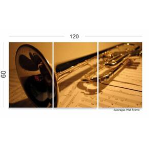 Quadro Trompete E Partitura Instrumentos Decorativo 120x60 3