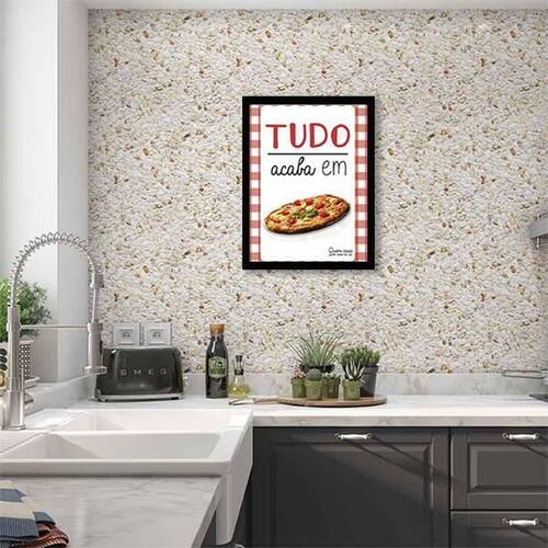 Quadro tudo acaba em pizza 24x18cm - com vidro Moldura: madeira preta Informações do produto Decoração para quarto, sala, cozinha, escritório, área gourmet e muito mais. Chega de paredes vazias Medidas - cada peça tem 24x18cm a5 . Material do papel - papel fotográfico brilhante de altíssima resolução acabamento - todos os quadros são acompanhados de vidro para proteção da imagem. - moldura em madeira maciça na cor preta e pendurador . - os quadros são embalados de forma segura com plástico bolha com camada dupla de acordo com o tamanho dos quadros. - de 3 meses. Meu quadro chegou. Como posso fixá-lo Você precisa apenas de um martelo e um prego, pois os quadros já vão acompanhados de penduradores. Esta é a forma mais indicada. Como posso limpar meu quadro A limpeza é feita como um móvel comum da sua casa. Apenas um pano seco ou espanador são suficientes para tal Marca: Não Informado