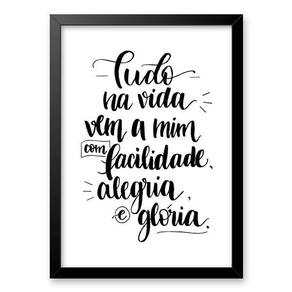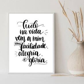 Quadro tudo na vida vem a mim com facilidade 24x18cm - com vidro Cor: moldura preta Informações do produto tire todas as suas dúvidas no descritivo abaixo: decoração para quarto, sala, cozinha, escritório, área gourmet e muito mais. Chega de paredes vazias medidas - cada peça tem 24x18cm a5 . Material do papel - papel fotográfico brilhante de altíssima resolução acabamento - todos os quadros são acompanhados de vidro para proteção da imagem. - moldura em madeira maciça na cor preta ou branca conforme produto escolhido e pendurador . - os quadros são embalados de forma segura com plástico bolha com camada dupla de acordo com o tamanho dos quadros. - de 3 meses. Meu quadro chegou. Como posso fixá-lo Você precisa apenas de um martelo e um prego, pois os quadros já vão acompanhados de penduradores. Esta é a forma mais indicada. Como posso limpar meu quadro A limpeza é feita como um móvel comum da sua casa. Apenas um pano seco ou espanador são suficientes para tal Marca: Não Informado