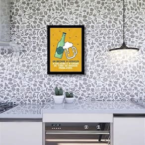 Quadro Um acompanha A Cerveja 24X18Cm Moldura: madeira branca Informações do produto Decoração para quarto, sala, cozinha, escritório, área gourmet e muito mais. Chega de paredes vazias. Medidas - cada peça tem 24x18cm a5 . Material do papel - papel fotográfico brilhante de altíssima resolução Acabamento - todos os quadros são acompanhados de uma película de acetato para proteção da imagem. - moldura em madeira maciça na cor branca e pendurador móvel que pode ser retirado facilmente caso deseje fixar com fita dupla face. - os quadros são embalados de forma segura com plástico bolha com camada dupla de acordo com o tamanho dos quadros. - de 3 meses Meu quadro chegou. Como posso fixá-lo: Você precisa apenas de um martelo e um prego, pois os quadros já vão acompanhados de penduradores. Esta é a forma mais indicada. Caso prefira, você pode utilizar uma fita dupla face neste caso, sugerimos de alta qualidade para evitar que descole e seu quadro caia . Como posso limpar meu quadro: A limpeza é feita como um móvel comum da sua casa. Apenas um pano seco ou espanador são suficientes para tal Marca: Não Informado Ean: 7892090488850