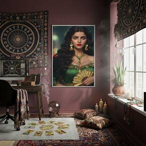Quadro Umbanda Cigana Esmeralda - 70x50cm - Cor: Moldura Preta
