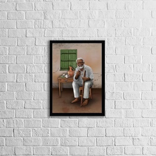Quadro umbanda preto velho 45x34cm - com vidro Moldura: madeira preta Informações do produto tire todas as suas dúvidas no descritivo abaixo: decoração para quarto, sala, cozinha, escritório, área gourmet e muito mais. Chega de paredes vazias medidas - cada peça tem 45x34cm a3 . Material do papel - papel fotográfico brilhante de altíssima resolução acabamento - todos os quadros são acompanhados de vidro para proteção da imagem. - moldura em madeira maciça na cor preta e pendurador . - os quadros são embalados de forma segura com plástico bolha com camada dupla de acordo com o tamanho dos quadros. - de 3 meses. Meu quadro chegou. Como posso fixá-lo Você precisa apenas de um martelo e um prego, pois os quadros já vão acompanhados de penduradores. Esta é a forma mais indicada. Como posso limpar meu quadro A limpeza é feita como um móvel comum da sua casa. Apenas um pano seco ou espanador são suficientes para tal Marca: Não Informado