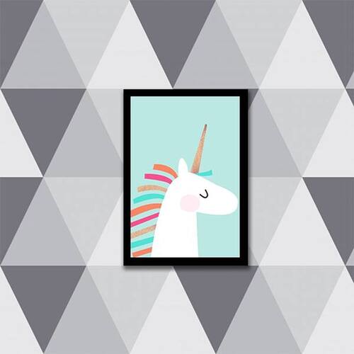 Quadro Unicórnio Baby 45x34cm - com vidro - Moldura: Madeira branca
