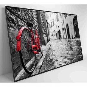 Quadro Urbano Bicicleta Vermelha Em Rua De Pedra Medidas 120x80 Cm Impressão Adesivo Fotográfico