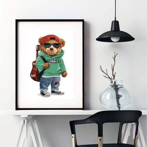 Quadro urso moda fashion - 60x48cm Moldura: madeira preta Informações do produto tire todas as suas dúvidas no descritivo abaixo: decoração para quarto, sala, cozinha, escritório, área gourmet e muito mais. Chega de paredes vazias medidas - cada peça tem 60x48cm . Material do papel - papel fotográfico brilhante de altíssima resolução acabamento - todos os quadros são acompanhados de vidro para proteção da imagem. - moldura em madeira maciça na cor preta ou branca conforme produto escolhido e pendurador. - paspatur branco com 7cm de largura - os quadros são embalados de forma segura com plástico bolha com camada dupla de acordo com o tamanho dos quadros. Garantia - garantia de 3 meses. Meu quadro chegou. Como posso fixá-lo Você precisa apenas de um martelo e um prego, pois os quadros já vão acompanhados de penduradores. Esta é a forma mais indicada. Como posso limpar meu quadro A limpeza é feita como um móvel comum da sua casa. Apenas um pano seco ou espanador são suficientes para tal