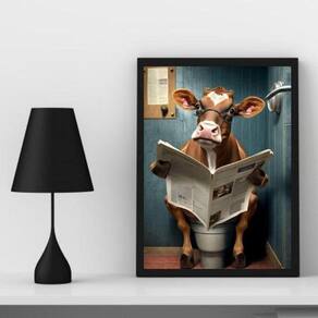 Garanta já o seu Quadro Vaca No Banheiro Lendo Jornal 45X34Cm e transforme a decoração do seu ambiente! Ean: 7893029730620
