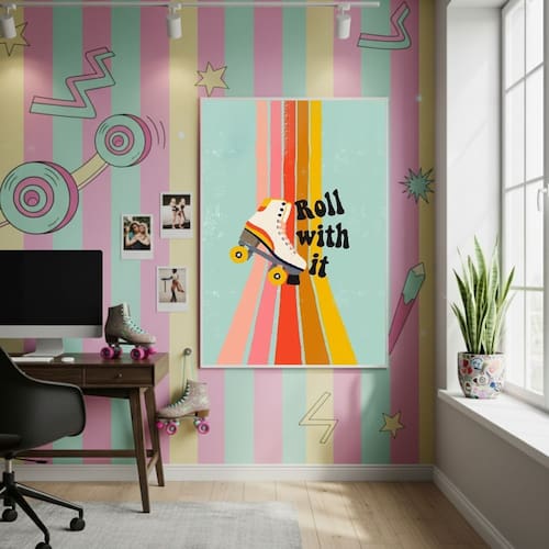 Quadro Vai Levando Com Patins 70x50cm Mold Preta
