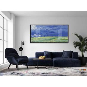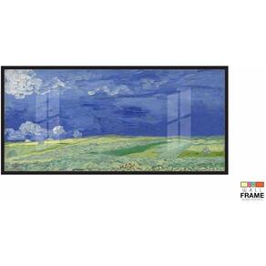 Quadro Van Gogh Paisagem Campos Trigo Decorativo 130x60 Moldura Preta 2x2