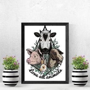 Quadro vegetariano love all animals 33x24cm - com vidro Moldura: madeira preta Informações do produto tire todas as suas dúvidas no descritivo abaixo: decoração para quarto, sala, cozinha, escritório, área gourmet e muito mais. Chega de paredes vazias medidas - cada peça tem 33x24cm a4 . Material do papel - papel fotográfico brilhante de altíssima resolução acabamento - todos os quadros são acompanhados de vidro para proteção da imagem. - moldura em madeira maciça na cor preta e pendurador . - os quadros são embalados de forma segura com plástico bolha com camada dupla de acordo com o tamanho dos quadros. - de 3 meses. Meu quadro chegou. Como posso fixá-lo Você precisa apenas de um martelo e um prego, pois os quadros já vão acompanhados de penduradores. Esta é a forma mais indicada. Como posso limpar meu quadro A limpeza é feita como um móvel comum da sua casa. Apenas um pano seco ou espanador são suficientes para tal Marca: Não Informado