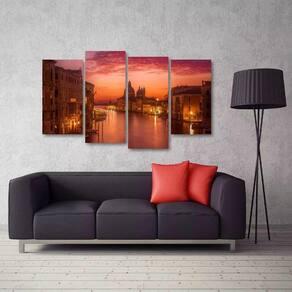 Quadro Veneza Paisagem Escritório Mosaico Em Tecido 4 Peças