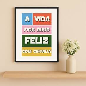 Quadro Vida Feliz Com Cerveja 33x24cm Mold Branca