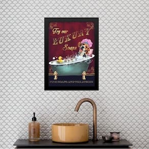 Quadro vintage banheiro beagle 33x24cm