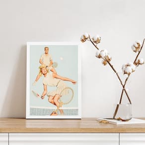 Quadro vintage casal jogando tênis 33x24cm - com vidro Moldura: madeira branca Informações do produto tire todas as suas dúvidas no descritivo abaixo: decoração para quarto, sala, cozinha, escritório, área gourmet e muito mais. Chega de paredes vazias medidas - cada peça tem 33x24cm a4 . Material do papel - papel fotográfico brilhante de altíssima resolução acabamento - todos os quadros são acompanhados de vidro para proteção da imagem. - moldura em madeira maciça na cor preta ou branca conforme produto escolhido e pendurador . - os quadros são embalados de forma segura com plástico bolha com camada dupla de acordo com o tamanho dos quadros. Garantia - garantia de 3 meses. Meu quadro chegou. Como posso fixá-lo Você precisa apenas de um martelo e um prego, pois os quadros já vão acompanhados de penduradores. Esta é a forma mais indicada. Como posso limpar meu quadro A limpeza é feita como um móvel comum da sua casa. Apenas um pano seco ou espanador são suficientes para tal