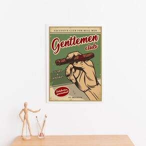 Quadro vintage charuto - gentlemen club 24x18cm - com vidro Cor: moldura branca Informações do produto tire todas as suas dúvidas no descritivo abaixo: decoração para quarto, sala, cozinha, escritório, área gourmet e muito mais. Chega de paredes vazias medidas - cada peça tem 24x18cm a5 . Material do papel - papel fotográfico brilhante de altíssima resolução acabamento - todos os quadros são acompanhados de vidro para proteção da imagem. - moldura em madeira maciça na cor preta ou branca conforme produto escolhido e pendurador . - os quadros são embalados de forma segura com plástico bolha com camada dupla de acordo com o tamanho dos quadros. Garantia - garantia de 3 meses. Meu quadro chegou. Como posso fixá-lo Você precisa apenas de um martelo e um prego, pois os quadros já vão acompanhados de penduradores. Esta é a forma mais indicada. Como posso limpar meu quadro A limpeza é feita como um móvel comum da sua casa. Apenas um pano seco ou espanador são suficientes para tal