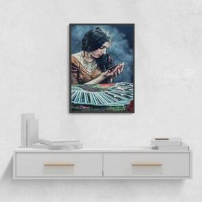 Quadro vintage cigana - cartomante 45x34cm - com vidro Moldura: madeira branca Informações do produto tire todas as suas dúvidas no descritivo abaixo: decoração para quarto, sala, cozinha, escritório, área gourmet e muito mais. Chega de paredes vazias medidas - cada peça tem 45x34cm a3 . Material do papel - papel fotográfico brilhante de altíssima resolução acabamento - todos os quadros são acompanhados de vidro para proteção da imagem. - moldura em madeira maciça na cor preta ou branca conforme produto escolhido e pendurador . - os quadros são embalados de forma segura com plástico bolha com camada dupla de acordo com o tamanho dos quadros. Garantia - garantia de 3 meses. Meu quadro chegou. Como posso fixá-lo Você precisa apenas de um martelo e um prego, pois os quadros já vão acompanhados de penduradores. Esta é a forma mais indicada. Como posso limpar meu quadro A limpeza é feita como um móvel comum da sua casa. Apenas um pano seco ou espanador são suficientes para tal