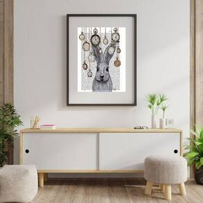 Quadro vintage coelho alice - 60x48cm Moldura: madeira branca Informações do produto tire todas as suas dúvidas no descritivo abaixo: decoração para quarto, sala, cozinha, escritório, área gourmet e muito mais. Chega de paredes vazias medidas - cada peça tem 60x48cm . Material do papel - papel fotográfico brilhante de altíssima resolução acabamento - todos os quadros são acompanhados de vidro para proteção da imagem. - moldura em madeira maciça na cor preta ou branca conforme produto escolhido e pendurador. - paspatur branco com 7cm de largura - os quadros são embalados de forma segura com plástico bolha com camada dupla de acordo com o tamanho dos quadros. Garantia - garantia de 3 meses. Meu quadro chegou. Como posso fixá-lo Você precisa apenas de um martelo e um prego, pois os quadros já vão acompanhados de penduradores. Esta é a forma mais indicada. Como posso limpar meu quadro A limpeza é feita como um móvel comum da sua casa. Apenas um pano seco ou espanador são suficientes para tal