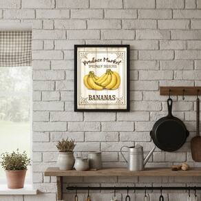 Quadro Vintage Cozinha Bananas 24x18cm Mold Branca Vidro