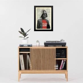 Quadro vintage darth - your father 24x18cm - com vidro Moldura: madeira branca Informações do produto tire todas as suas dúvidas no descritivo abaixo: decoração para quarto, sala, cozinha, escritório, área gourmet e muito mais. Chega de paredes vazias medidas - cada peça tem 24x18cm a5 . Material do papel - papel fotográfico brilhante de altíssima resolução acabamento - todos os quadros são acompanhados de vidro para proteção da imagem. - moldura em madeira maciça na cor preta ou branca conforme produto escolhido e pendurador . - os quadros são embalados de forma segura com plástico bolha com camada dupla de acordo com o tamanho dos quadros. Garantia - garantia de 3 meses. Meu quadro chegou. Como posso fixá-lo Você precisa apenas de um martelo e um prego, pois os quadros já vão acompanhados de penduradores. Esta é a forma mais indicada. Como posso limpar meu quadro A limpeza é feita como um móvel comum da sua casa. Apenas um pano seco ou espanador são suficientes para tal