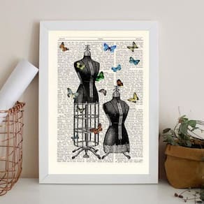 Quadro vintage manequins costura borboletas 33x24cm - com vidro Moldura: madeira branca Informações do produto tire todas as suas dúvidas no descritivo abaixo: decoração para quarto, sala, cozinha, escritório, área gourmet e muito mais. Chega de paredes vazias medidas - cada peça tem 33x24cm a4 . Material do papel - papel fotográfico brilhante de altíssima resolução acabamento - todos os quadros são acompanhados de vidro para proteção da imagem. - moldura em madeira maciça na cor preta ou branca conforme produto escolhido e pendurador . - os quadros são embalados de forma segura com plástico bolha com camada dupla de acordo com o tamanho dos quadros. Garantia - garantia de 3 meses. Meu quadro chegou. Como posso fixá-lo Você precisa apenas de um martelo e um prego, pois os quadros já vão acompanhados de penduradores. Esta é a forma mais indicada. Como posso limpar meu quadro A limpeza é feita como um móvel comum da sua casa. Apenas um pano seco ou espanador são suficientes para tal Ean: 7890995115789
