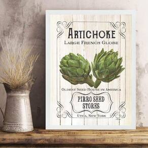 Quadro vintage para cozinha alcachofra 24x18cm - com vidro Cor: moldura branca Informações do produto tire todas as suas dúvidas no descritivo abaixo: decoração para quarto, sala, cozinha, escritório, área gourmet e muito mais. Chega de paredes vazias medidas - cada peça tem 24x18cm a5 . Material do papel - papel fotográfico brilhante de altíssima resolução acabamento - todos os quadros são acompanhados de vidro para proteção da imagem. - moldura em madeira maciça na cor preta ou branca conforme produto escolhido e pendurador . - os quadros são embalados de forma segura com plástico bolha com camada dupla de acordo com o tamanho dos quadros. Garantia - garantia de 3 meses. Meu quadro chegou. Como posso fixá-lo Você precisa apenas de um martelo e um prego, pois os quadros já vão acompanhados de penduradores. Esta é a forma mais indicada. Como posso limpar meu quadro A limpeza é feita como um móvel comum da sua casa. Apenas um pano seco ou espanador são suficientes para tal