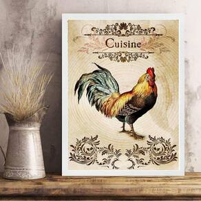 Quadro vintage para cozinha galo 24x18cm - com vidro Cor: moldura preta Informações do produto tire todas as suas dúvidas no descritivo abaixo: decoração para quarto, sala, cozinha, escritório, área gourmet e muito mais. Chega de paredes vazias medidas - cada peça tem 24x18cm a5 . Material do papel - papel fotográfico brilhante de altíssima resolução acabamento - todos os quadros são acompanhados de vidro para proteção da imagem. - moldura em madeira maciça na cor preta ou branca conforme produto escolhido e pendurador . - os quadros são embalados de forma segura com plástico bolha com camada dupla de acordo com o tamanho dos quadros. Garantia - garantia de 3 meses. Meu quadro chegou. Como posso fixá-lo Você precisa apenas de um martelo e um prego, pois os quadros já vão acompanhados de penduradores. Esta é a forma mais indicada. Como posso limpar meu quadro A limpeza é feita como um móvel comum da sua casa. Apenas um pano seco ou espanador são suficientes para tal