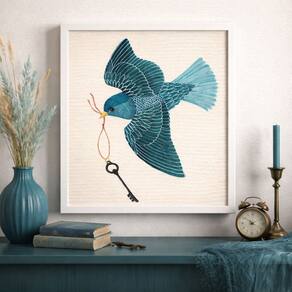 Quadro Vintage Passarinho 33x33cm Mold Branca