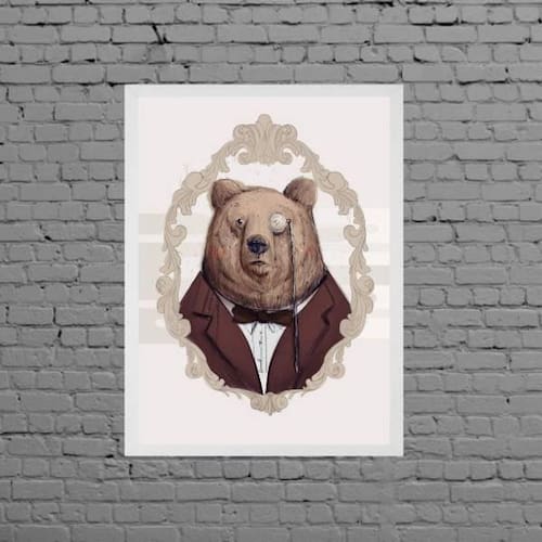 Quadro vintage senhor urso 33x24cm - com vidro Moldura: madeira preta Informações do produto tire todas as suas dúvidas no descritivo abaixo: decoração para quarto, sala, cozinha, escritório, área gourmet e muito mais. Chega de paredes vazias medidas - cada peça tem 33x24cm a4 . Material do papel - papel fotográfico brilhante de altíssima resolução acabamento - todos os quadros são acompanhados de vidro para proteção da imagem. - moldura em madeira maciça na cor preta e pendurador . - os quadros são embalados de forma segura com plástico bolha com camada dupla de acordo com o tamanho dos quadros. - de 3 meses. Meu quadro chegou. Como posso fixá-lo Você precisa apenas de um martelo e um prego, pois os quadros já vão acompanhados de penduradores. Esta é a forma mais indicada. Como posso limpar meu quadro A limpeza é feita como um móvel comum da sua casa. Apenas um pano seco ou espanador são suficientes para tal