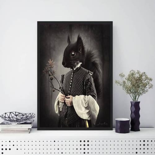 Quadro Vintage Senhora Esquilo 45X34Cm Moldura Preta