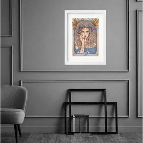 Quadro Vintage Signo Capricórnio - 60x48cm - Moldura: Madeira branca