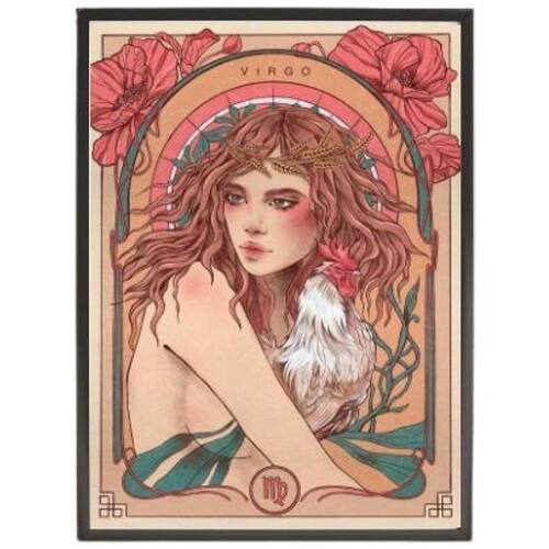 Quadro vintage signo virgem 33x24cm - com vidro Moldura: madeira preta Informações do produto Decoração para quarto, sala, cozinha, escritório, área gourmet e muito mais. Chega de paredes vazias medidas - cada peça tem 33x24cm a4 . Material do papel - papel fotográfico brilhante de altíssima resolução Acabamento - todos os quadros são acompanhados de vidro para proteção da imagem. - Moldura em madeira maciça na cor preta e pendurador . - Os quadros são embalados de forma segura com plástico bolha com camada dupla de acordo com o tamanho dos quadros. - de 3 meses. Meu quadro chegou. Como posso fixá-lo Você precisa apenas de um martelo e um prego, pois os quadros já vão acompanhados de penduradores. Esta é a forma mais indicada. Como posso limpar meu quadro A limpeza é feita como um móvel comum da sua casa. Apenas um pano seco ou espanador são suficientes para tal Ean: 7895142208420