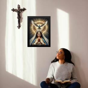 Quadro virgem maria e o espírito santo 33x24cm Cor: moldura preta Informações do produto tire todas as suas dúvidas no descritivo abaixo: decoração para quarto, sala, cozinha, escritório, área gourmet e muito mais. Chega de paredes vazias medidas - cada peça tem 33x24cm a4 . Material do papel - papel fotográfico brilhante de altíssima resolução acabamento - todos os quadros são acompanhados de uma película de acetato para proteção da imagem. - os quadros são embalados de forma segura com plástico bolha com camada dupla de acordo com o tamanho dos quadros. - de 3 meses. Meu quadro chegou. Como posso fixá-lo Você precisa apenas de um martelo e um prego, pois os quadros já vão acompanhados de penduradores. Esta é a forma mais indicada. Caso prefira, você pode utilizar uma fita dupla face neste caso, sugerimos de alta qualidade para evitar que descole e seu quadro caia . Como posso limpar meu quadro A limpeza é feita como um móvel comum da sua casa. Apenas um pano seco ou espanador são suficientes para tal Marca: Não Informado