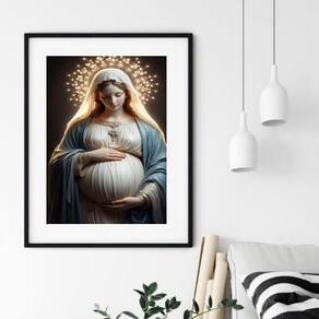 Quadro virgem maria grávida - 60x48 cm 24x18cm - com vidro Moldura: madeira preta Informações do produto tire todas as suas dúvidas no descritivo abaixo: decoração para quarto, sala, cozinha, escritório, área gourmet e muito mais. Chega de paredes vazias medidas - cada peça tem 24x18cm a5 . Material do papel - papel fotográfico brilhante de altíssima resolução acabamento - todos os quadros são acompanhados de vidro para proteção da imagem. - moldura em madeira maciça na cor preta ou branca conforme produto escolhido e pendurador . - os quadros são embalados de forma segura com plástico bolha com camada dupla de acordo com o tamanho dos quadros. Garantia - garantia de 3 meses. Meu quadro chegou. Como posso fixá-lo Você precisa apenas de um martelo e um prego, pois os quadros já vão acompanhados de penduradores. Esta é a forma mais indicada. Como posso limpar meu quadro A limpeza é feita como um móvel comum da sua casa. Apenas um pano seco ou espanador são suficientes para tal