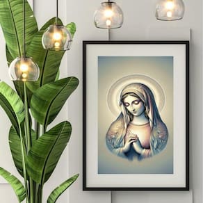 Quadro virgem maria prateada - 60x48cm Moldura: madeira preta Informações do produto tire todas as suas dúvidas no descritivo abaixo: decoração para quarto, sala, cozinha, escritório, área gourmet e muito mais. Chega de paredes vazias medidas - cada peça tem 60x48cm . Material do papel - papel fotográfico brilhante de altíssima resolução acabamento - todos os quadros são acompanhados de vidro para proteção da imagem. - moldura em madeira maciça na cor preta ou branca conforme produto escolhido e pendurador. - paspatur branco com 7cm de largura - os quadros são embalados de forma segura com plástico bolha com camada dupla de acordo com o tamanho dos quadros. Garantia - garantia de 3 meses. Meu quadro chegou. Como posso fixá-lo Você precisa apenas de um martelo e um prego, pois os quadros já vão acompanhados de penduradores. Esta é a forma mais indicada. Como posso limpar meu quadro A limpeza é feita como um móvel comum da sua casa. Apenas um pano seco ou espanador são suficientes para tal