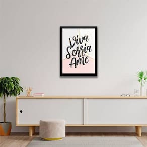 Quadro viva, sorria, ame 24x18cm - com vidro Moldura: madeira branca Informações do produto tire todas as suas dúvidas no descritivo abaixo: decoração para quarto, sala, cozinha, escritório, área gourmet e muito mais. Chega de paredes vazias medidas - cada peça tem 24x18cm a5 . Material do papel - papel fotográfico brilhante de altíssima resolução acabamento - todos os quadros são acompanhados de vidro para proteção da imagem. - moldura em madeira maciça na cor preta e pendurador . - os quadros são embalados de forma segura com plástico bolha com camada dupla de acordo com o tamanho dos quadros. - de 3 meses. Meu quadro chegou. Como posso fixá-lo Você precisa apenas de um martelo e um prego, pois os quadros já vão acompanhados de penduradores. Esta é a forma mais indicada. Como posso limpar meu quadro A limpeza é feita como um móvel comum da sua casa. Apenas um pano seco ou espanador são suficientes para tal Marca: Não Informado Ean: 7895145442463