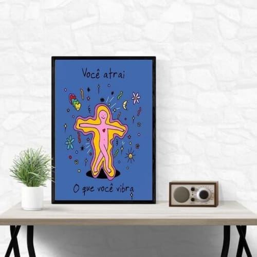 Quadro você atrai o que você vibra 24x18cm - com vidro Cor: moldura branca Informações do produto tire todas as suas dúvidas no descritivo abaixo: decoração para quarto, sala, cozinha, escritório, área gourmet e muito mais. Chega de paredes vazias medidas - cada peça tem 24x18cm a5 . Material do papel - papel fotográfico brilhante de altíssima resolução acabamento - todos os quadros são acompanhados de vidro para proteção da imagem. - moldura em madeira maciça na cor preta ou branca conforme produto escolhido e pendurador . - os quadros são embalados de forma segura com plástico bolha com camada dupla de acordo com o tamanho dos quadros. Garantia - garantia de 3 meses. Meu quadro chegou. Como posso fixá-lo Você precisa apenas de um martelo e um prego, pois os quadros já vão acompanhados de penduradores. Esta é a forma mais indicada. Como posso limpar meu quadro A limpeza é feita como um móvel comum da sua casa. Apenas um pano seco ou espanador são suficientes para tal