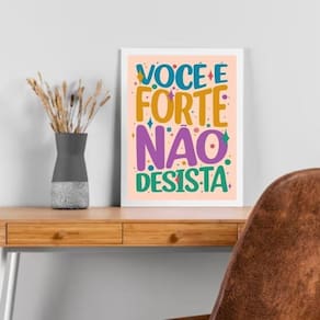 Quadro você é forte não desista 45x34cm Cor: moldura branca Informações do produto tire todas as suas dúvidas no descritivo abaixo: decoração para quarto, sala, cozinha, escritório, área gourmet e muito mais. Chega de paredes vazias. Medidas - cada peça tem 45x34cm a3 . Material do papel - papel fotográfico brilhante de altíssima resolução acabamento - todos os quadros são acompanhados de uma película de acetato para proteção da imagem. - os quadros são embalados de forma segura com plástico bolha com camada dupla de acordo com o tamanho dos quadros. - de 3 meses. Meu quadro chegou. Como posso fixá-lo Você precisa apenas de um martelo e um prego, pois os quadros já vão acompanhados de penduradores. Esta é a forma mais indicada. Caso prefira, você pode utilizar uma fita dupla face neste caso, sugerimos de alta qualidade para evitar que descole e seu quadro caia . Como posso limpar meu quadro A limpeza é feita como um móvel comum da sua casa. Apenas um pano seco ou espanador são suficientes para tal Marca: Não Informado Ean: 7896031305077