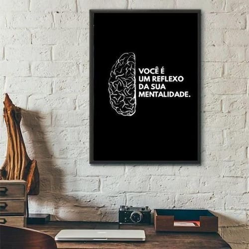 Quadro você é um reflexo da sua mentalidade 45x34cm Cor: moldura preta Informações do produto tire todas as suas dúvidas no descritivo abaixo: decoração para quarto, sala, cozinha, escritório, área gourmet e muito mais. Chega de paredes vazias. Medidas - cada peça tem 45x34cm a3 . Material do papel - papel fotográfico brilhante de altíssima resolução acabamento - todos os quadros são acompanhados de uma película de acetato para proteção da imagem. - os quadros são embalados de forma segura com plástico bolha com camada dupla de acordo com o tamanho dos quadros. - de 3 meses. Meu quadro chegou. Como posso fixá-lo Você precisa apenas de um martelo e um prego, pois os quadros já vão acompanhados de penduradores. Esta é a forma mais indicada. Caso prefira, você pode utilizar uma fita dupla face neste caso, sugerimos de alta qualidade para evitar que descole e seu quadro caia . Como posso limpar meu quadro A limpeza é feita como um móvel comum da sua casa. Apenas um pano seco ou espanador são suficientes para tal