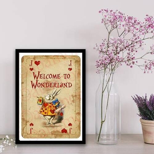 Quadro welcome to wonderland 24x18cm Moldura: madeira preta Informações do produto Decoração para quarto, sala, cozinha, escritório, área gourmet e muito mais. Chega de paredes vazias Medidas - cada peça tem 24x18cm a5 . Material do papel - papel fotográfico brilhante de altíssima resolução Acabamento - todos os quadros são acompanhados de uma película de acetato para proteção da imagem. - moldura em madeira maciça na cor preta e pendurador . - os quadros são embalados de forma segura com plástico bolha com camada dupla de acordo com o tamanho dos quadros. - de 3 meses. Meu quadro chegou. Como posso fixá-lo Você precisa apenas de um martelo e um prego, pois os quadros já vão acompanhados de penduradores. Esta é a forma mais indicada. Como posso limpar meu quadro A limpeza é feita como um móvel comum da sua casa. Apenas um pano seco ou espanador são suficientes para tal Marca: Não Informado
