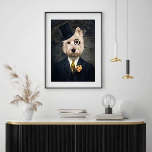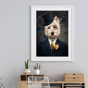 Quadro West Terrier Lord - 60x48cm - Moldura: Madeira preta