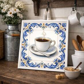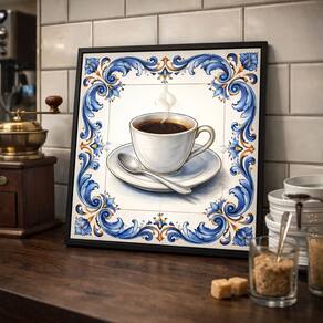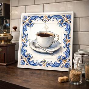 Quadro Xícara de Café Vintage 33x33cm Mold Branca