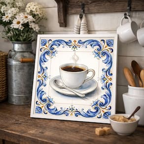 Quadro Xícara de Café Vintage 33x33cm Mold Preta Vidro